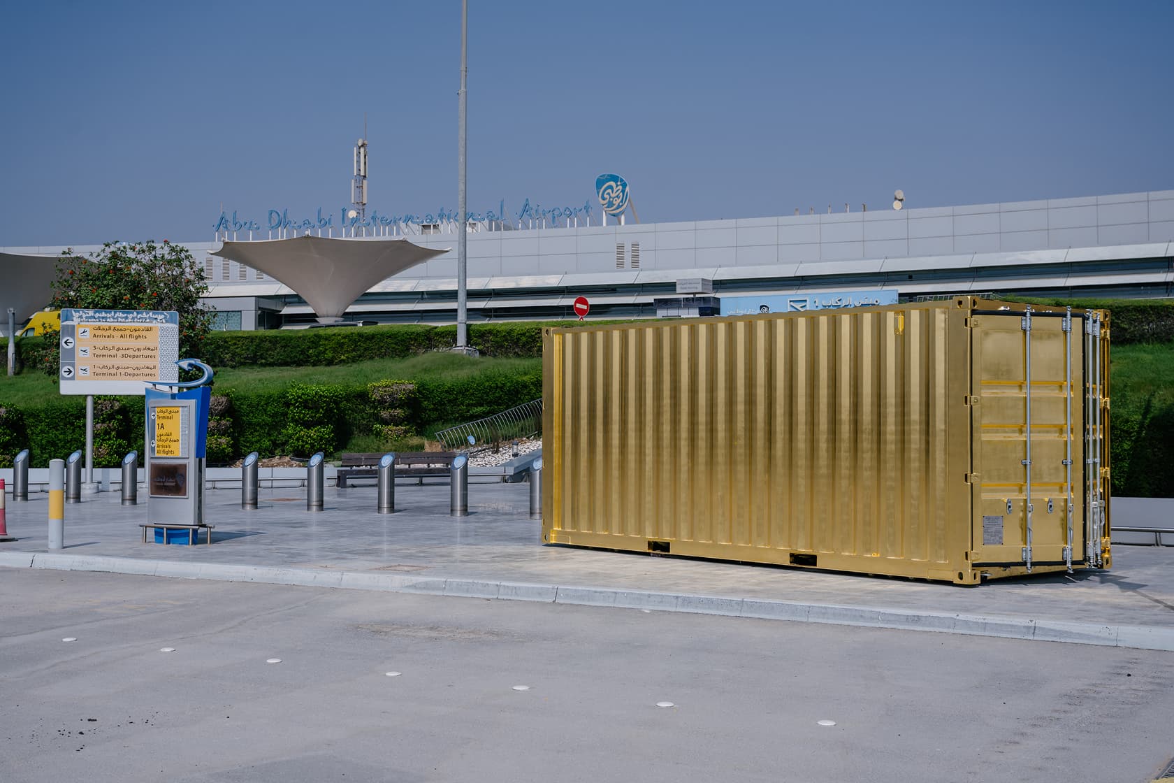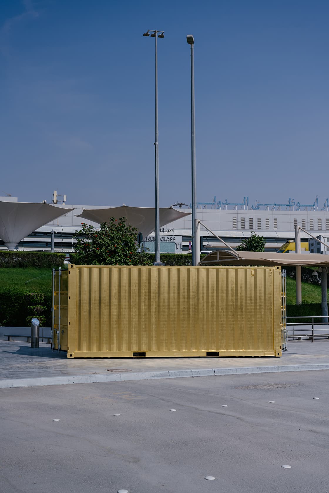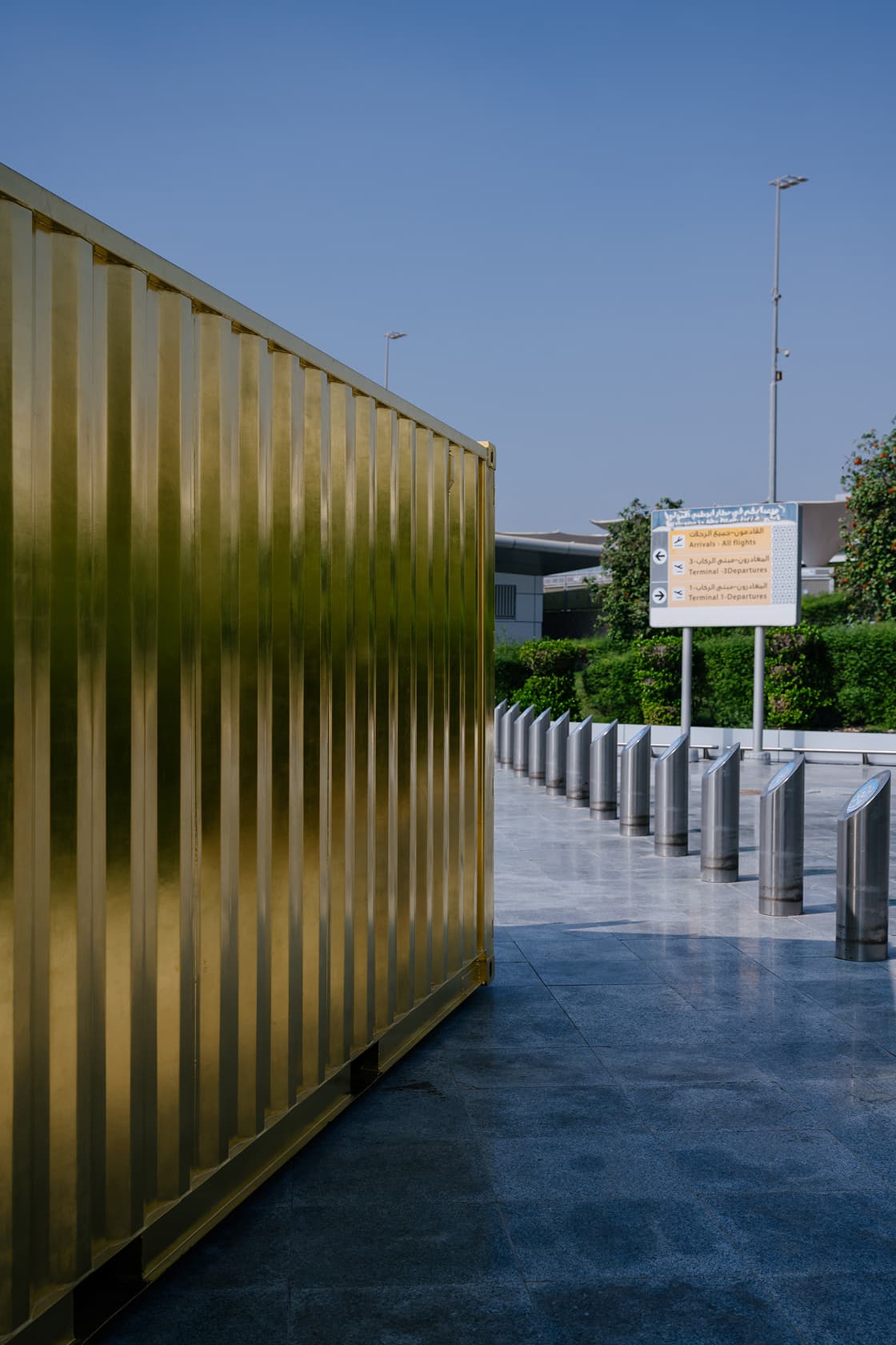 The special project The Golden Container by Inloco Gallery was presented at NOMAD Abu Dhabi 2025 at Terminal 1, Zayed International Airport. Designed by Architizer Award–winning architect Andrey Voronov, the installation explores new possibilities for preserving and exhibiting contemporary art through the concept of open storage. The container also showcases works by Italian conceptual artist Filippo Minelli from his series PAYSAGE UAE and The Idealised City — the latter created during his site-specific intervention organized by the gallery in Dubai in 2024.
